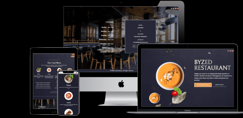 Ordering and Reservation System: The website includes an integrated ordering system connected to the delivery team and a reservation system that notifies the chef via tablet when an order is placed. Byzed Restaurant became the first-ever restaurant in Algeria to have its own ordering system.